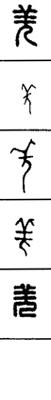 从上到下依次是小篆、甲骨文、金文、古玺及战国文字、缪篆及汉代文字、鸟虫篆。