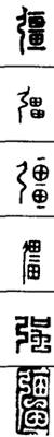 从上到下依次是小篆、甲骨文、金文、古玺及战国文字、缪篆及汉代文字、鸟虫篆。