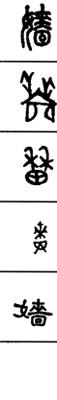 从上到下依次是小篆、甲骨文、金文、古玺及战国文字、缪篆及汉代文字、鸟虫篆。