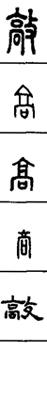 从上到下依次是小篆、甲骨文、金文、古玺及战国文字、缪篆及汉代文字、鸟虫篆。