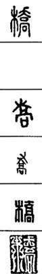 从上到下依次是小篆、甲骨文、金文、古玺及战国文字、缪篆及汉代文字、鸟虫篆。