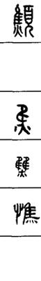 从上到下依次是小篆、甲骨文、金文、古玺及战国文字、缪篆及汉代文字、鸟虫篆。