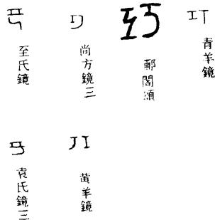 从上到下依次是小篆、甲骨文、金文、古玺及战国文字、缪篆及汉代文字、鸟虫篆。