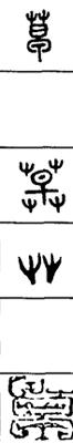 从上到下依次是小篆、甲骨文、金文、古玺及战国文字、缪篆及汉代文字、鸟虫篆。