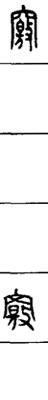 从上到下依次是小篆、甲骨文、金文、古玺及战国文字、缪篆及汉代文字、鸟虫篆。