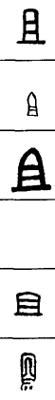 从上到下依次是小篆、甲骨文、金文、古玺及战国文字、缪篆及汉代文字、鸟虫篆。