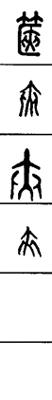 从上到下依次是小篆、甲骨文、金文、古玺及战国文字、缪篆及汉代文字、鸟虫篆。