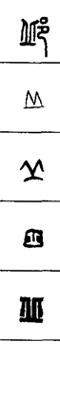 从上到下依次是小篆、甲骨文、金文、古玺及战国文字、缪篆及汉代文字、鸟虫篆。