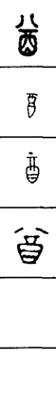 从上到下依次是小篆、甲骨文、金文、古玺及战国文字、缪篆及汉代文字、鸟虫篆。