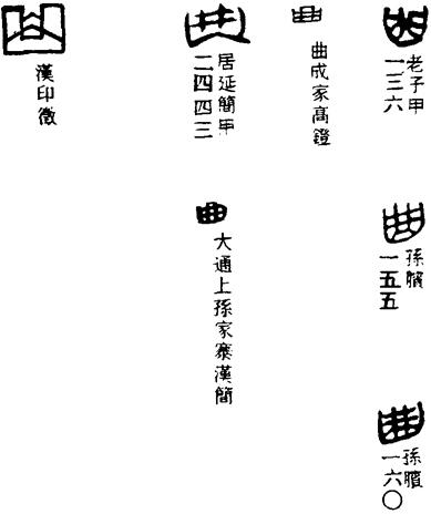 《璽彙》〇九〇七:“肖余子曲。”三四一七:“岂(范)茀曲尔。”“曲尔”、“曲”讀為“鉤璽”,鉤為璽印别稱,説已見前見紐“句讀為鉤”條。按《爾雅·釋木》:“下句曰朻。”《詩·周南·南有樛木》毛傳引句作曲。