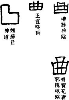 【说明】“曲”为象形字。像器物变曲之形。参附录三。