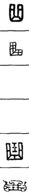 从上到下依次是小篆、甲骨文、金文、古玺及战国文字、缪篆及汉代文字、鸟虫篆。