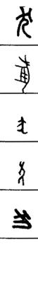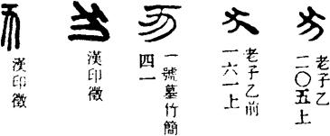 从上到下依次是小篆、甲骨文、金文、古玺及战国文字、缪篆及汉代文字、鸟虫篆。