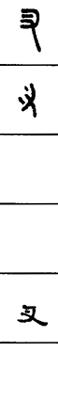 从上到下依次是小篆、甲骨文、金文、古玺及战国文字、缪篆及汉代文字、鸟虫篆。