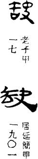 从上到下依次是小篆、甲骨文、金文、古玺及战国文字、缪篆及汉代文字、鸟虫篆。