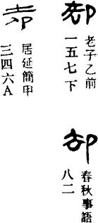 〈辨〉却字篆书作卻,从卩谷声,卩读jié,本为人的变体,象人跪坐之形;本义为退却,是人的一种行为。俗作却、讹变作郄。今以却为正体◇注意:用为偏旁,卩与阝,形近易误,不要弄错。