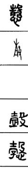 从上到下依次是小篆、甲骨文、金文、古玺及战国文字、缪篆及汉代文字、鸟虫篆。