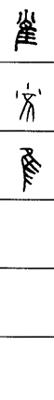从上到下依次是小篆、甲骨文、金文、古玺及战国文字、缪篆及汉代文字、鸟虫篆。
