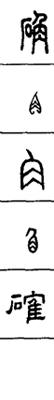 从上到下依次是小篆、甲骨文、金文、古玺及战国文字、缪篆及汉代文字、鸟虫篆。