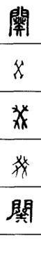 从上到下依次是小篆、甲骨文、金文、古玺及战国文字、缪篆及汉代文字、鸟虫篆。