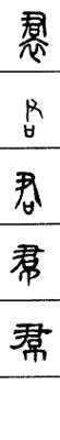 从上到下依次是小篆、甲骨文、金文、古玺及战国文字、缪篆及汉代文字、鸟虫篆。