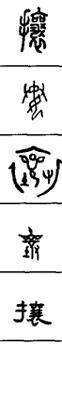 从上到下依次是小篆、甲骨文、金文、古玺及战国文字、缪篆及汉代文字、鸟虫篆。