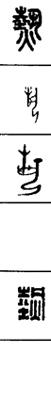从上到下依次是小篆、甲骨文、金文、古玺及战国文字、缪篆及汉代文字、鸟虫篆。