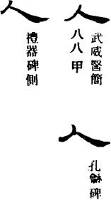 【说明】“人”是象形字,像侧身而立的人形。参附录三。