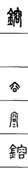 从上到下依次是小篆、甲骨文、金文、古玺及战国文字、缪篆及汉代文字、鸟虫篆。