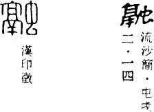 从上到下依次是小篆、甲骨文、金文、古玺及战国文字、缪篆及汉代文字、鸟虫篆。