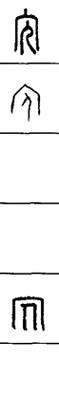从上到下依次是小篆、甲骨文、金文、古玺及战国文字、缪篆及汉代文字、鸟虫篆。