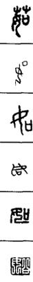 从上到下依次是小篆、甲骨文、金文、古玺及战国文字、缪篆及汉代文字、鸟虫篆。