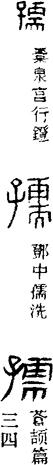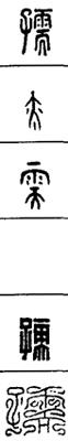 从上到下依次是小篆、甲骨文、金文、古玺及战国文字、缪篆及汉代文字、鸟虫篆。