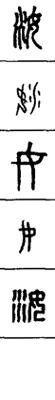 从上到下依次是小篆、甲骨文、金文、古玺及战国文字、缪篆及汉代文字、鸟虫篆。
