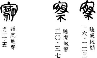 从上到下依次是小篆、甲骨文、金文、古玺及战国文字、缪篆及汉代文字、鸟虫篆。