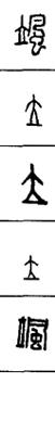 从上到下依次是小篆、甲骨文、金文、古玺及战国文字、缪篆及汉代文字、鸟虫篆。