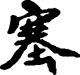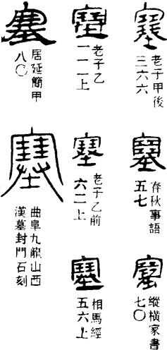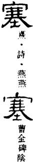 篆书的塞字,象人于室中用双手将土石之类东西填堵空穴之形,故其本义为填堵、窒塞,引申为阻隔,又引申指边界险要之处。