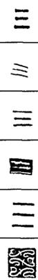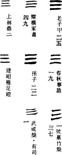 从上到下依次是小篆、甲骨文、金文、古玺及战国文字、缪篆及汉代文字、鸟虫篆。