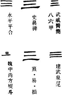 基数,三。《论语·先进》:“夫三子者之言何如?”泛指多数或多次。《孟子·滕文公上》:“禹八年于外,三过其门而不入。”又为序数,第三。《左传·庄公十年》:“一鼓作气,再而衰,三而竭。”(再:第二。)晁错《论贵粟疏》:“一曰主用足,二曰民赋少,三曰劝农功。”(劝:鼓励。)