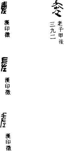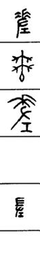 从上到下依次是小篆、甲骨文、金文、古玺及战国文字、缪篆及汉代文字、鸟虫篆。