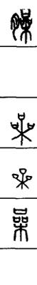 从上到下依次是小篆、甲骨文、金文、古玺及战国文字、缪篆及汉代文字、鸟虫篆。