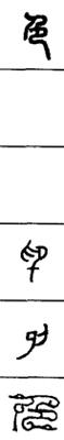 从上到下依次是小篆、甲骨文、金文、古玺及战国文字、缪篆及汉代文字、鸟虫篆。