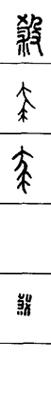 从上到下依次是小篆、甲骨文、金文、古玺及战国文字、缪篆及汉代文字、鸟虫篆。