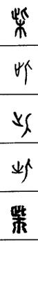 从上到下依次是小篆、甲骨文、金文、古玺及战国文字、缪篆及汉代文字、鸟虫篆。