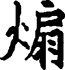 shān 〔又〕shàn ①扇火。引申为扇惑、扇动。陆游《排闷》:“月畏讒口煽。”《旧五代史·明宗纪四》:“煽摇军众。”②炽盛。《集韵》:“煽,火盛也。”《诗·小雅·十月之交》:“艳妻煽方处。”