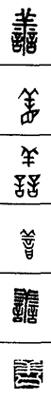 从上到下依次是小篆、甲骨文、金文、古玺及战国文字、缪篆及汉代文字、鸟虫篆。