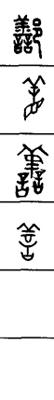 从上到下依次是小篆、甲骨文、金文、古玺及战国文字、缪篆及汉代文字、鸟虫篆。