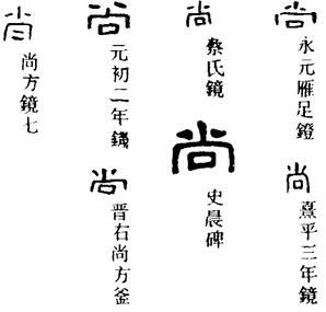 ㈠shàng ①超过,高出。《盐铁论·相刺》:“文学言治尚于唐虞。”②尊重;崇尚。《荀子·王制》:“尚贤使能。”③夸;自负。任昉《齐司空曲江公行状》:“持论从容,词无矜尚。”④加在上面。《诗·齐风·著》:“尚之以琼华呼尔”。⑤久远。《吕氏春秋·古乐》:“乐所由来者尚矣。”⑥管理帝王的事物。如:尚食;尚衣。⑦匹配,多用于匹配皇家的女儿。《汉书·卫青传》:“平阳侯曹寿尚武帝妹阳信长公主。”⑧佑助。《诗·大雅·抑》:“肆皇天弗尚。”⑨还;犹。如:为时尚早。⑩尚且。《史记·李将军列传》:“今将军尚不得夜行,何乃故也。”⑾庶几;差不多。《左传·昭公十三年》:“余尚得天下。”⑿表示劝勉、命令的语气词。《书·汤誓》:“尔尚辅予一人。”