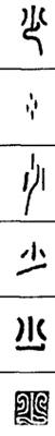从上到下依次是小篆、甲骨文、金文、古玺及战国文字、缪篆及汉代文字、鸟虫篆。