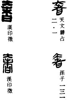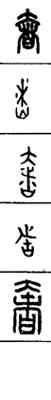 从上到下依次是小篆、甲骨文、金文、古玺及战国文字、缪篆及汉代文字、鸟虫篆。